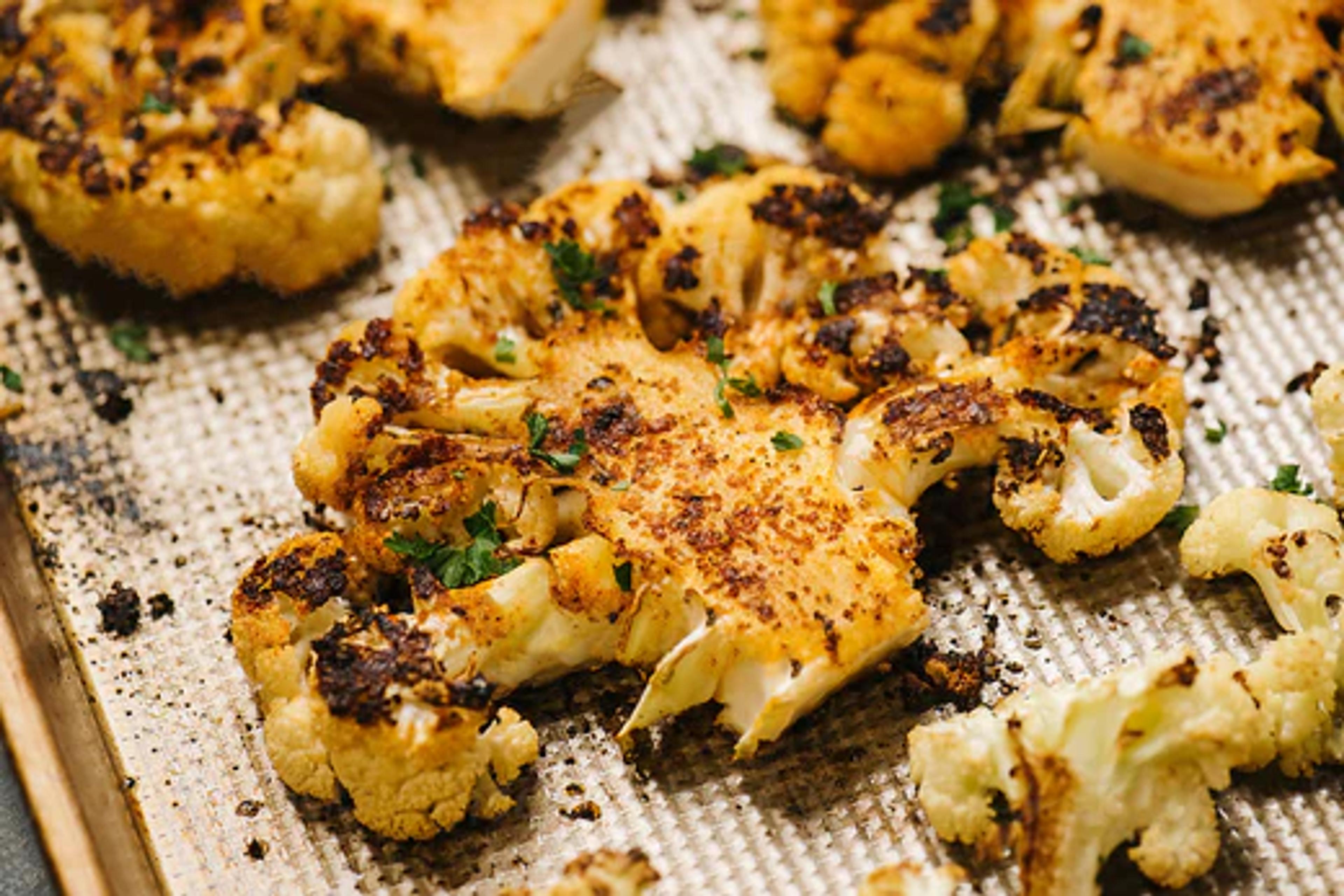 Enjoy flavorful and spicy cauliflower steaks as a delicious and satisfying dish.