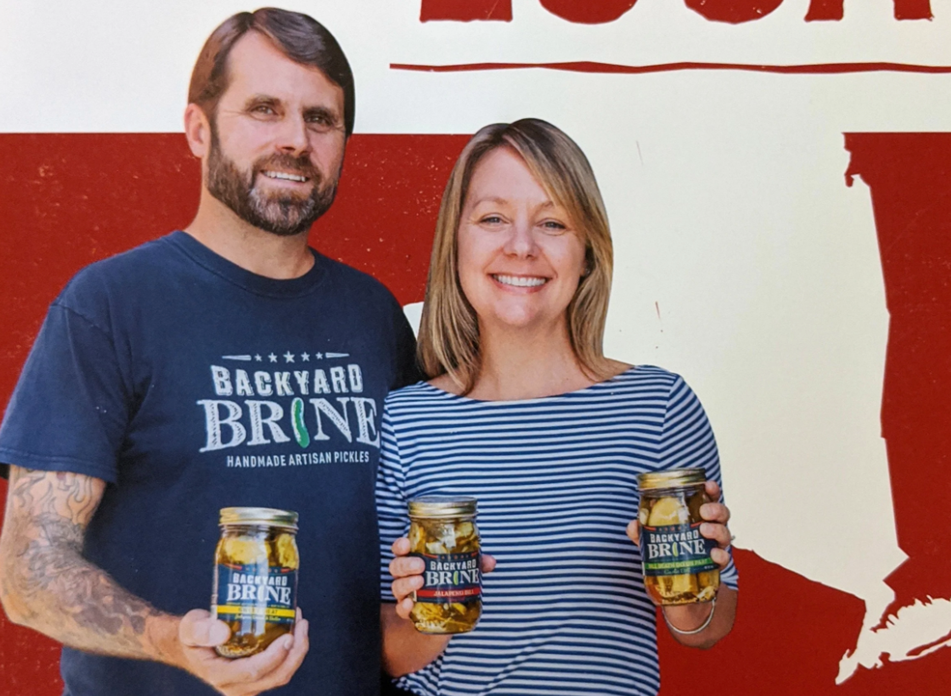 Their company started in 2013 in their home kitchen with family recipes and produce from their backyard garden. Their first order was 100 jars of pickles for favors for a family wedding. They came up with names such as “Dill Death Do Us Part”, “We Go Together Like Bread & Butter” and “Relish the Moment”. The pickles were a hit and Backyard Brine was born!