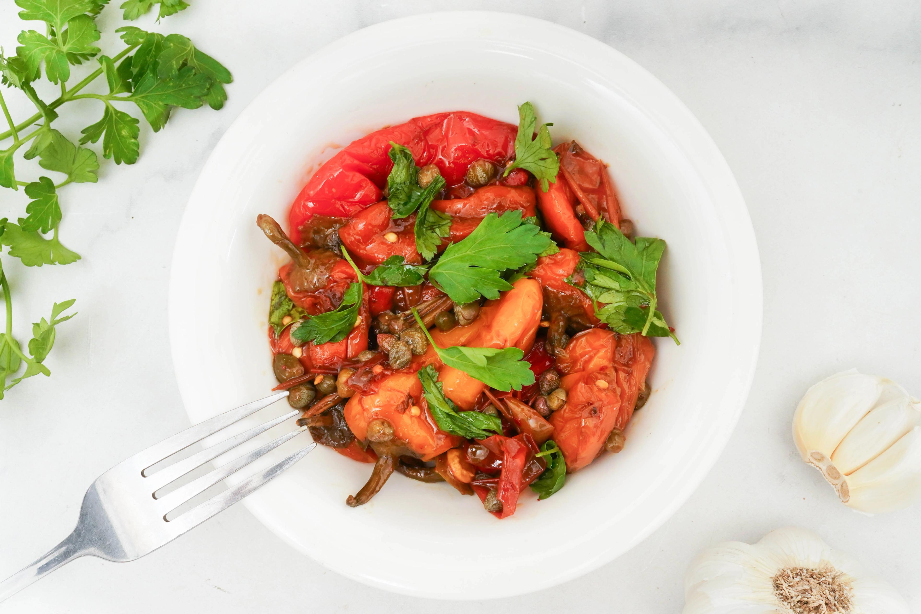 Pepperonata can be enjoyed warm or at room temperature, making it a versatile accompaniment or a standalone dish. It's commonly served as a side dish to grilled meats, poultry, or fish, or as a topping for bruschetta or crostini. The dish not only delights the palate with its harmonious blend of flavors but also enchants the senses with its vibrant appearance, making it a beloved staple in Italian cuisine.