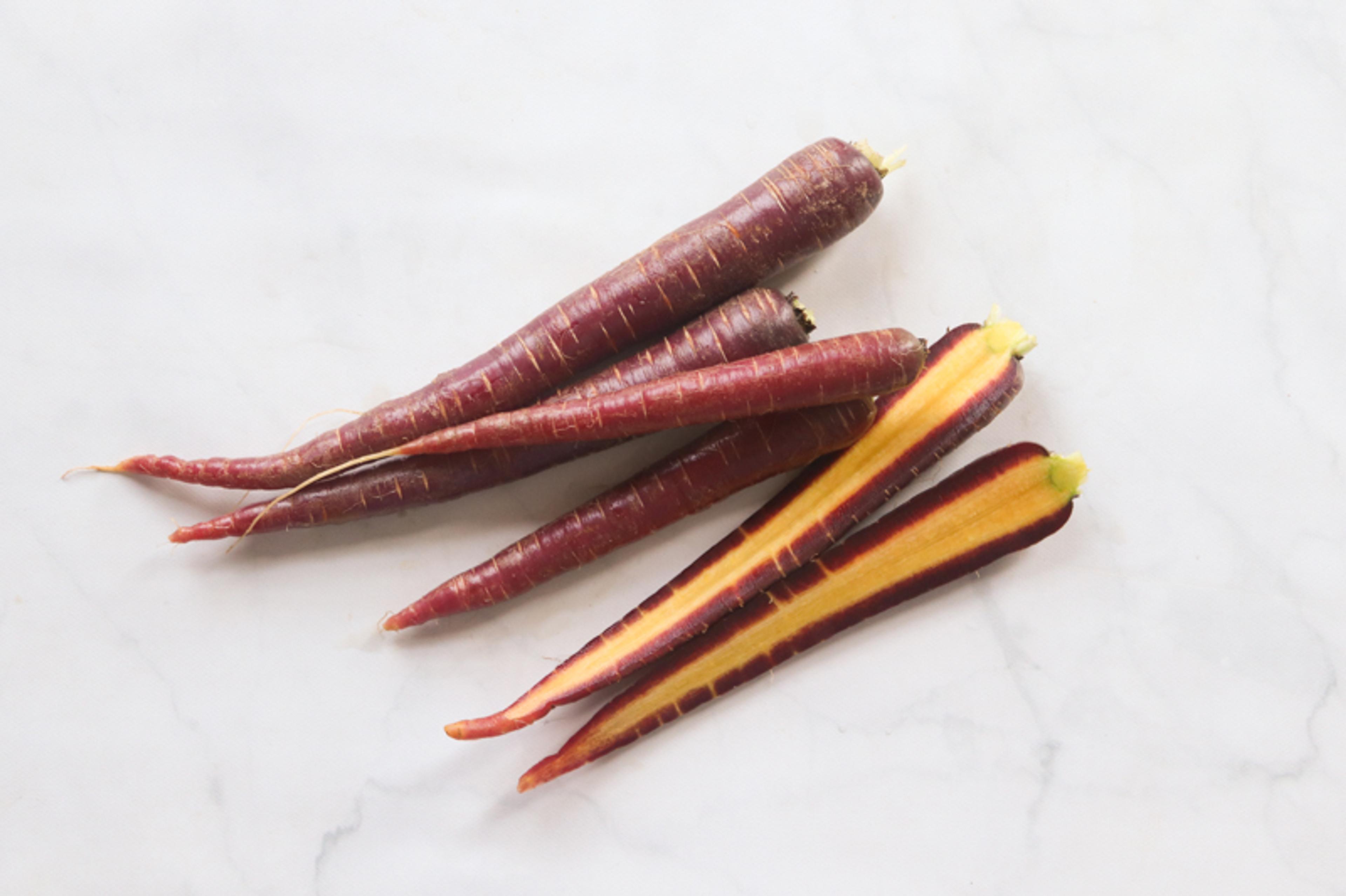 These carrots are purple on the outside and orange on the inside. Sure to bring an exciting addition to any meal or veg plate. Perfectly crisp and sweet!
