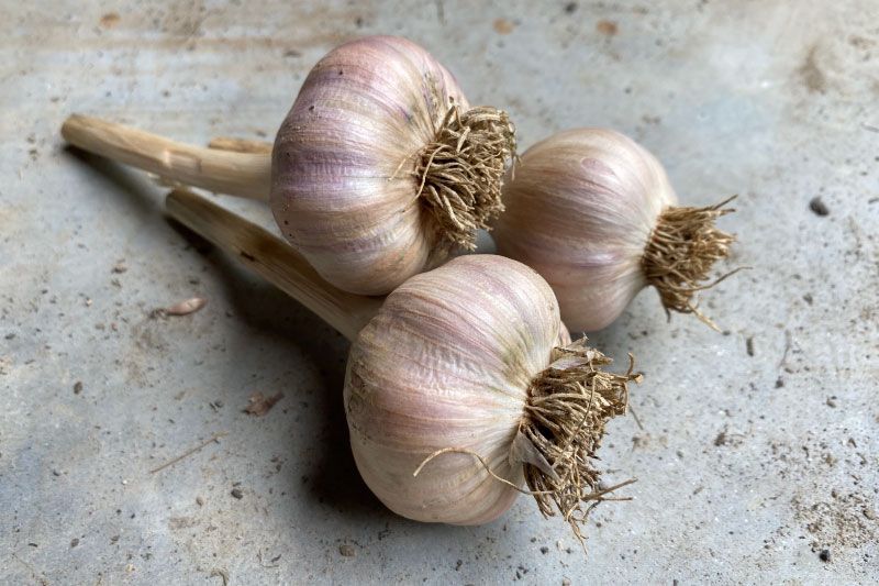 Native to South Korea, and sometimes known as Seoul Sister garlic, this purple and white striped garlic head opens up to 5-7 deep violet cloves. When raw, this garlic has an exceptionally hot and spicy flavor that mellows with cooking into a tangy, creamy, full-bodied garlic flavor that is reminiscent of sweet pepper. Best suited for baking and roasting, try adding to lasagna or mushrooms to really punch up their flavors. It would also make a killer roast chicken (well, killer if you're a vampire). Use sparingly raw, as the flavor is quite potent.