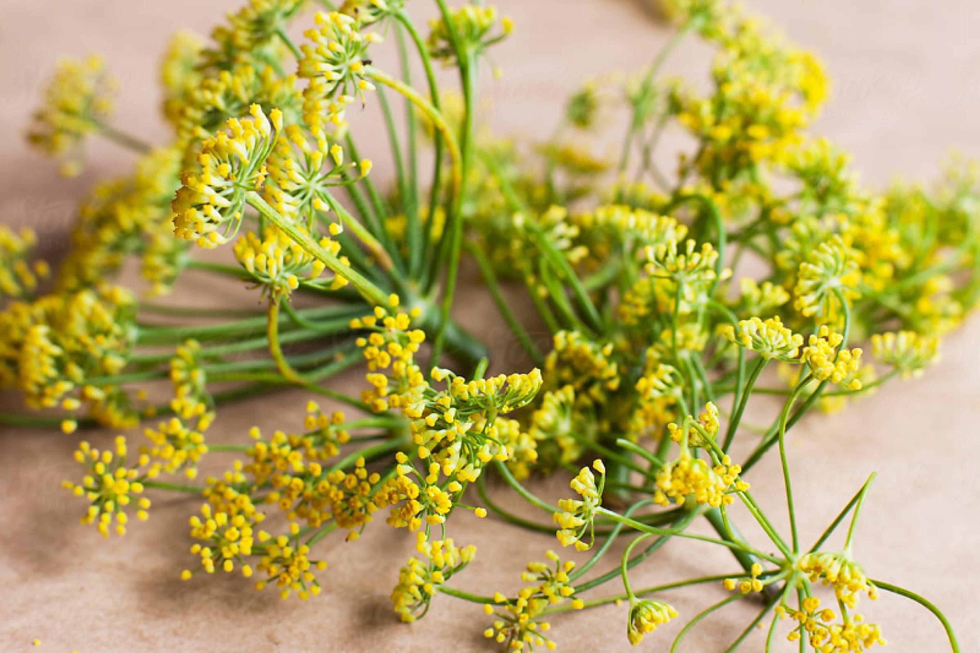 These bright yellow flowers crop up on the end of long fennel fronds, and, like fennel, have a delicious, warm taste of licorice. Perfect for adding that licorice pop to your dishes, or adding that savory flavor of fennel or Italian sausage without bulking up a meal. Sprinkle into a rich tomato sauce, use to flavor ground pork or tofu, or garnish egg dishes.