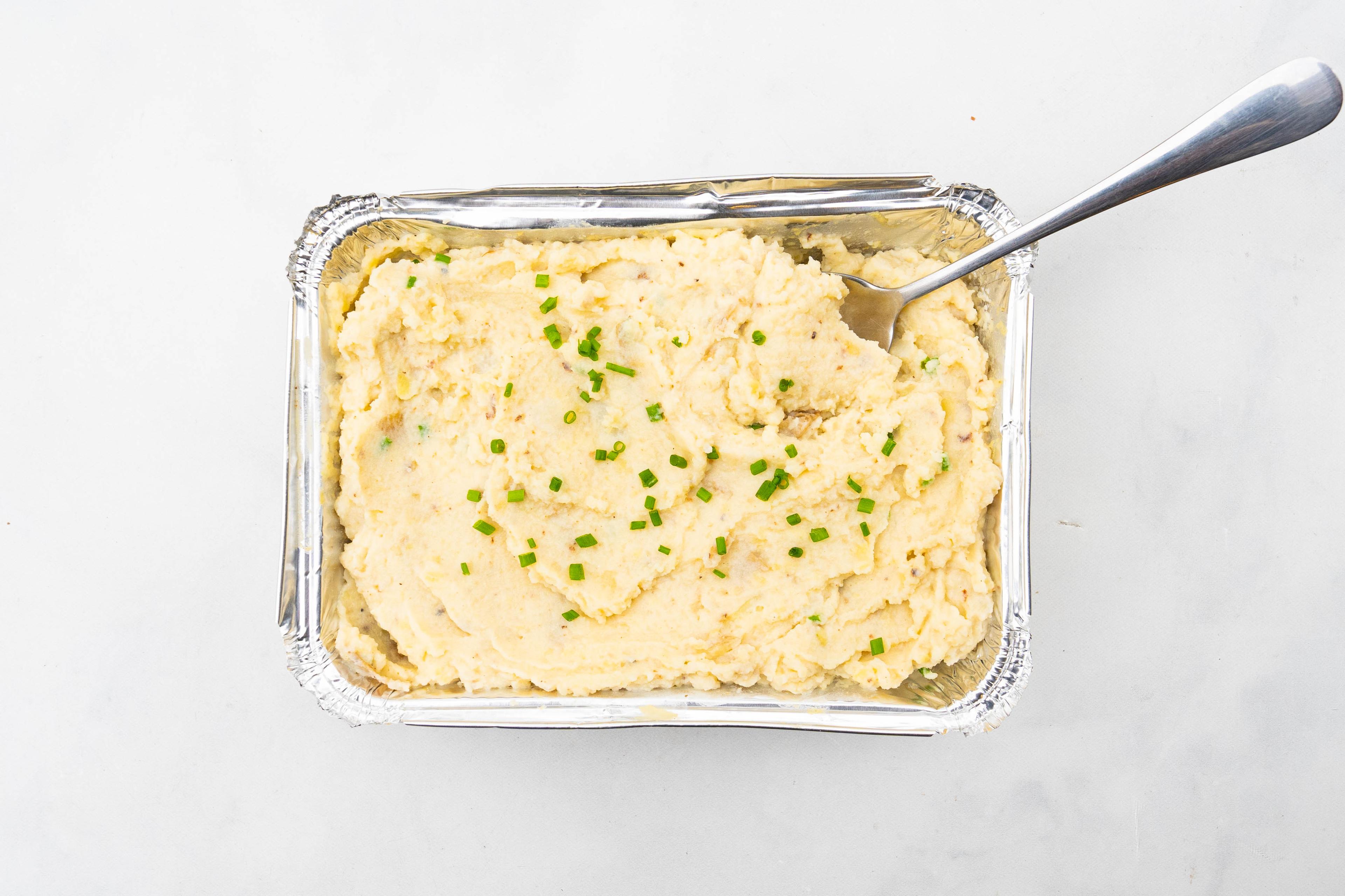 To reheat in oven: Preheat oven to 325°F. Remove lid from container and drizzle milk or stock over mashed potatoes. Cover with foil and bake 15 to 20 minutes, until warmed through.